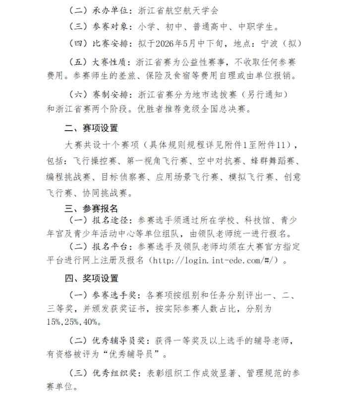 关于 关于举办第十届全国青少年无人机大赛(浙江省赛)的通知
