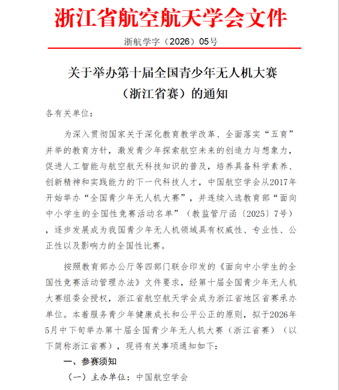 关于举办第十届全国青少年无人机大赛(浙江省赛)的通知