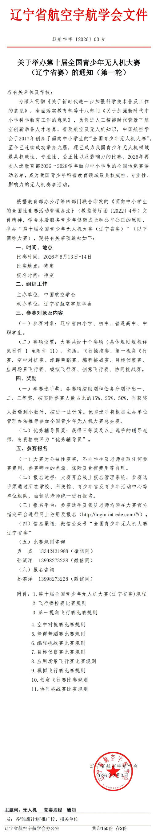 关于 关于举办第十届全国青少年无人机大赛(辽宁省赛)的通知(第一轮)