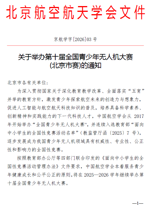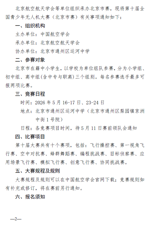 关于 关于举办第十届全国青少年无人机大赛(北京市赛)的通知
