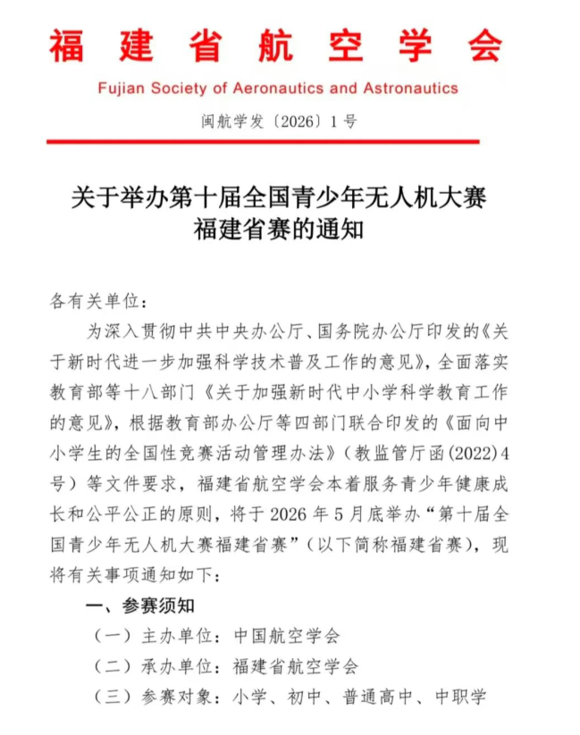 关于举办第十届全国青少年无人机大赛 福建省赛的通知